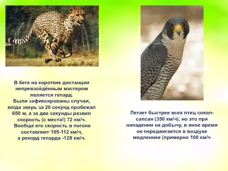 Летает быстрее всех птиц сокол-сапсан (350 км/ч), но это при нападении на добычу, в иное время он передвигается в воздухе медленнее (примерно 100 км/ч