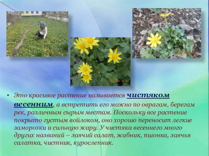 Зацветает он ранней весной, поэтому его в народе называют желтым подснежником.