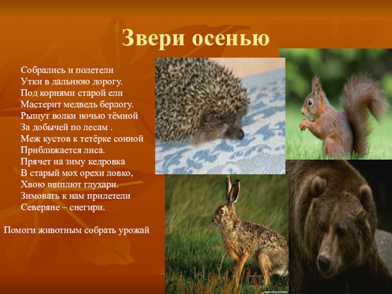 Звери осенью    Собрались и полетели    Утки в дальнюю дорогу.