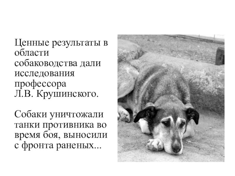 Слайд 12Ценные результаты в области собаководства дали исследования профессора