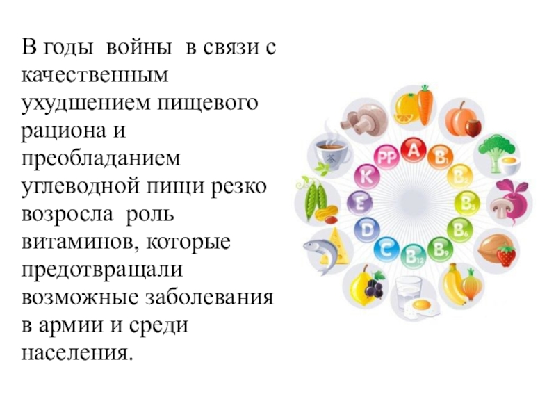 преобладанием углеводной пищи резко возросла роль витаминов, которые предотвращали возможные заболевания в армии и среди населения.