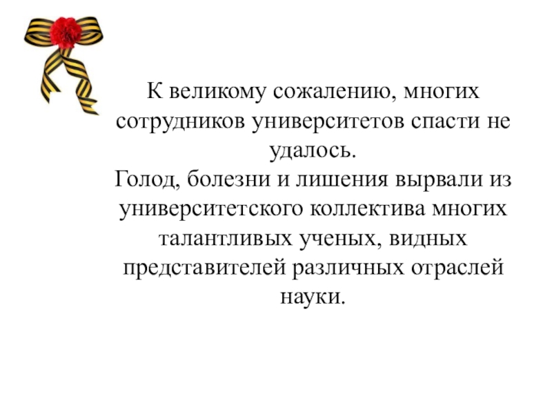 Слайд 19К великому сожалению, многих сотрудников университетов спасти не удалось.