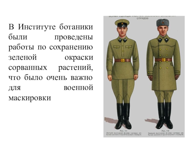 Слайд 16В Институте ботаники были проведены работы по сохранению зеленой окраски сорванных