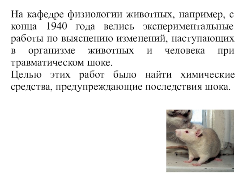 Слайд 13На кафедре физиологии животных, например, с конца 1940 года велись экспериментальные