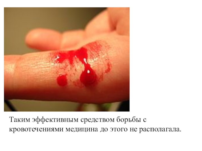 Слайд 10Таким эффективным средством борьбы с кровотечениями медицина до этого не располагала.