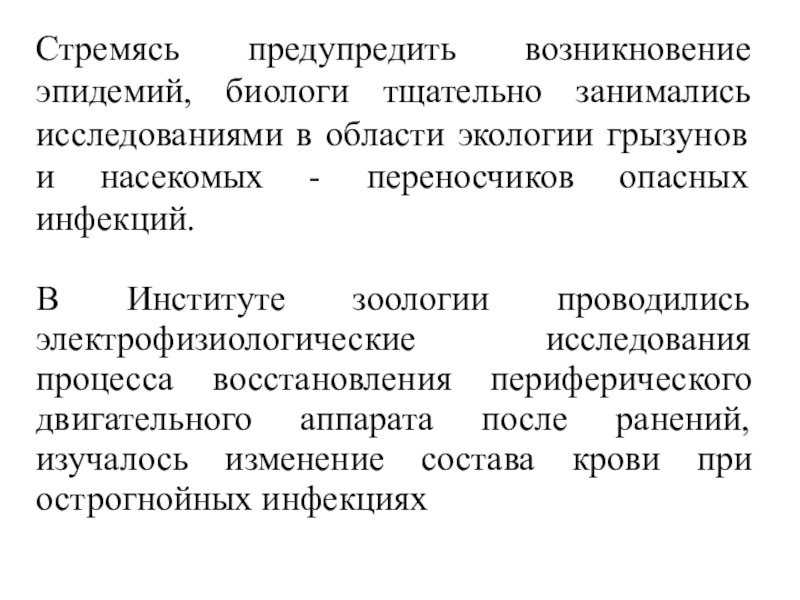 Слайд 15Стремясь предупредить возникновение эпидемий, биологи тщательно занимались исследованиями в области экологии