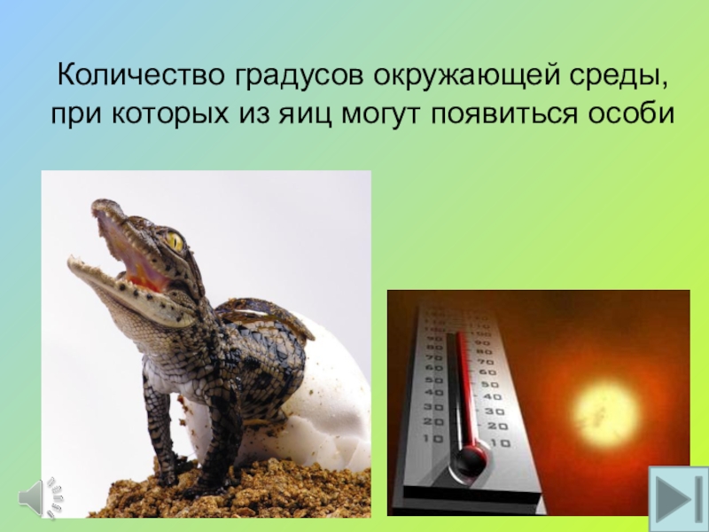 Слайд 15Количество градусов окружающей среды, при которых из яиц могут появиться особи
