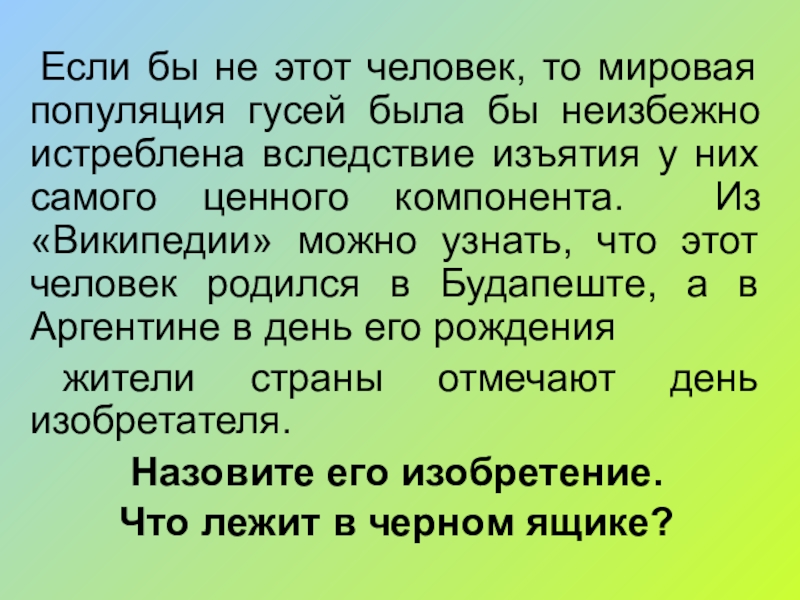 Слайд 29 Если бы не этот человек, то мировая популяция гусей была