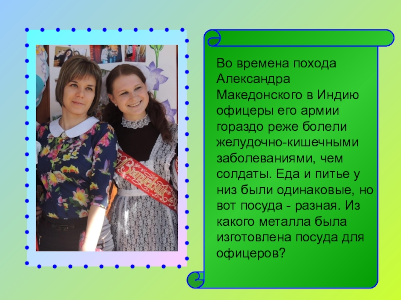 армии гораздо реже болели желудочно-кишечными заболеваниями, чем солдаты. Еда и питье у низ были одинаковые, но вот посуда - разная. Из какого металла была изготовлена посуда для офицеров?