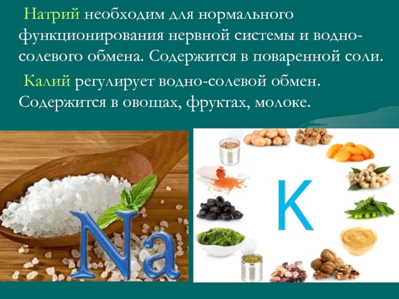 Слайд 41 Натрий необходим для нормального функционирования нервной системы и водно-солевого обмена. Содержится