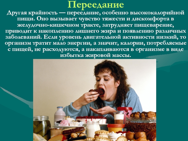 Другая крайность — переедание, особенно высококалорийной пищи. Оно вызывает чувство тяжести