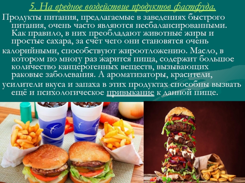 Слайд 135. На вредное воздействие продуктов фастфуда.