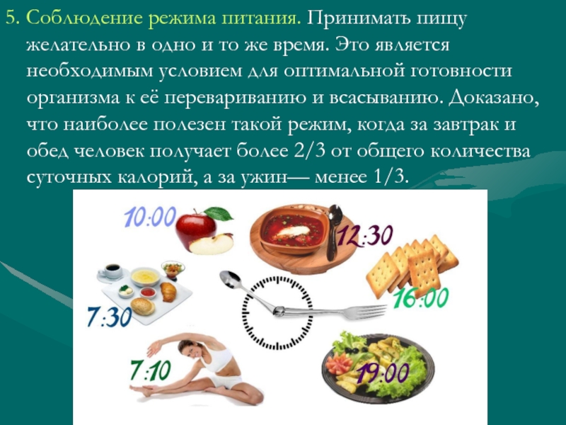 Слайд 505. Соблюдение режима питания. Принимать пищу желательно в одно и то