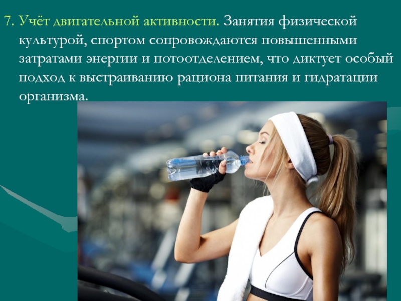 Слайд 527. Учёт двигательной активности. Занятия физической культурой, спортом сопровождаются повышенными затратами