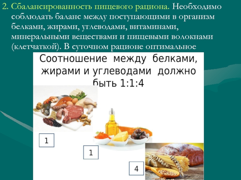 Слайд 462. Сбалансированность пищевого рациона. Необходимо соблюдать баланс между поступающими в организм