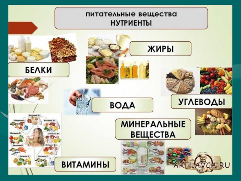 (лейцин, изолейцин, лизин и др.), линолевая кислота, минеральные вещества (кальций, натрий, фосфор, железо и др.), жирорастворимые (А, D, E,K) и водорастворимые (B1, B2, С и др.) витамины. Если в пище отсутствуют те или иные эссенциальные пищевые вещества, организм заболевает, длительный их недостаток приводит к смерти.