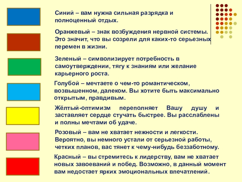 Синий – вам нужна сильная разрядка и полноценный отдых.