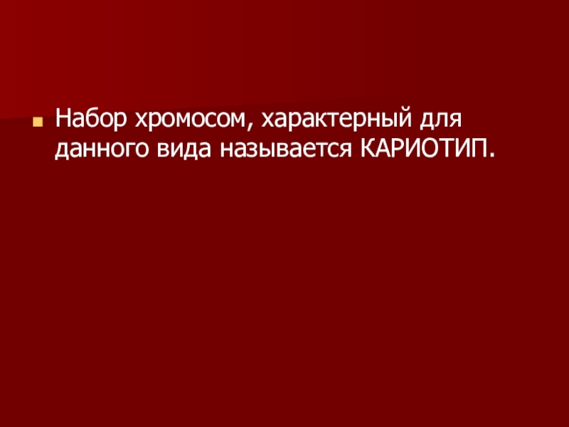 Набор хромосом, характерный для данного вида называется КАРИОТИП.