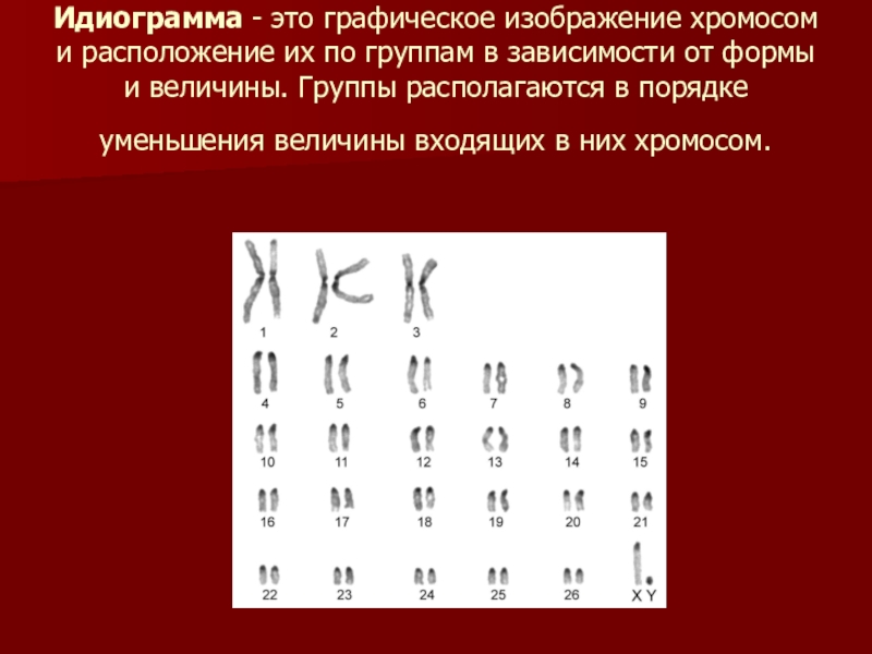 Слайд 8Идиограмма - это графическое изображение хромосом и расположение их по группам