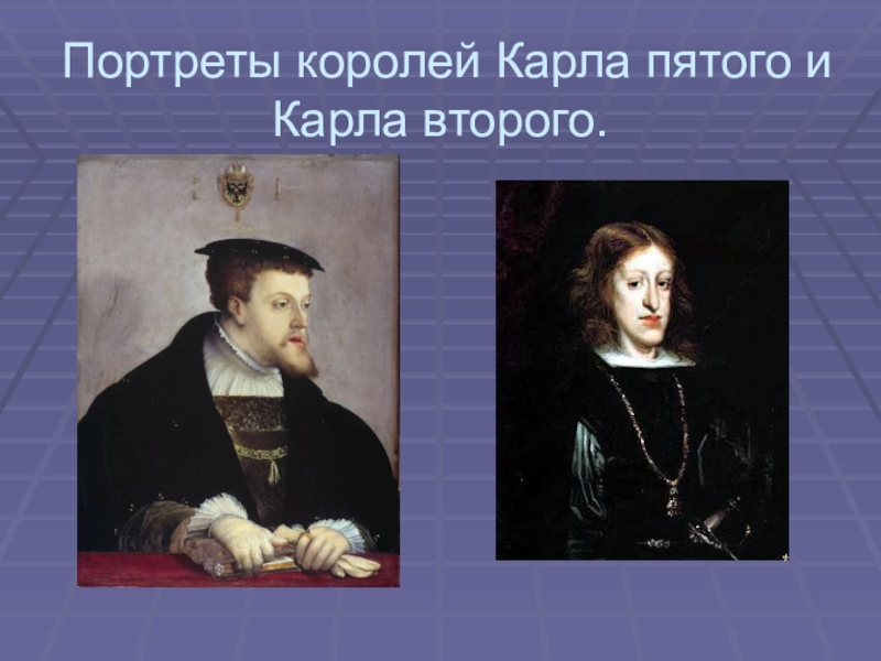 Слайд 14Портреты королей Карла пятого и Карла второго.
