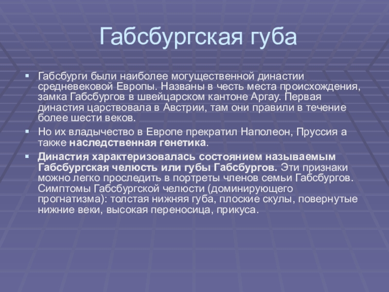Габсбургская губа (есть даже такой медицинский термин) - одна из самых