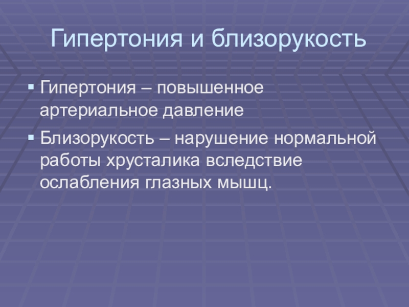 Слайд 16Гипертония и близорукость