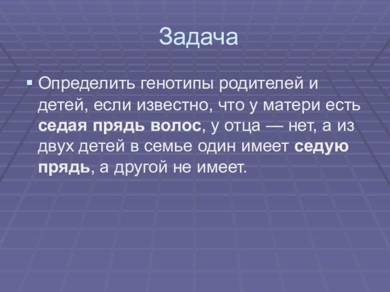 седая прядь волос, у отца — нет, а из двух детей в семье один имеет седую прядь, а другой не имеет.