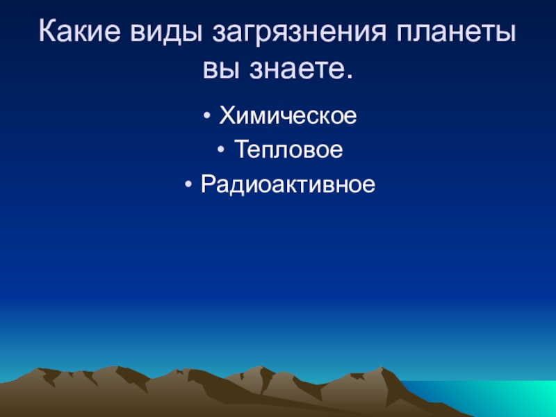 Слайд 13Какие виды загрязнения планеты вы знаете.
