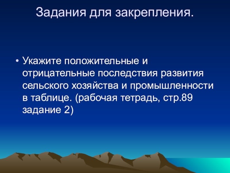 хозяйства и промышленности в таблице. (рабочая тетрадь, стр.89 задание 2)