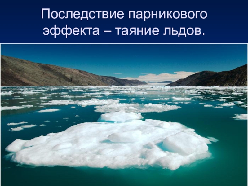 Слайд 29Последствие парникового эффекта – таяние льдов.