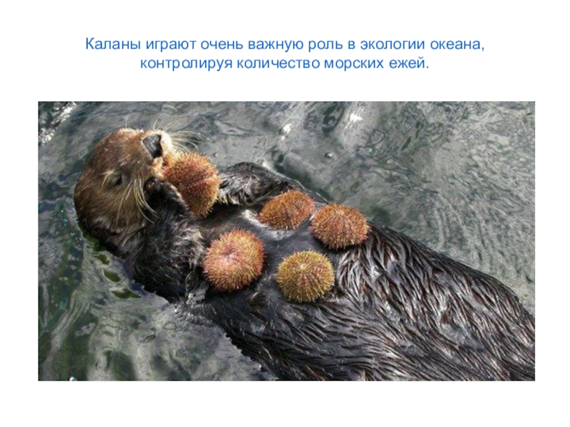 Слайд 13Каланы играют очень важную роль в экологии океана, контролируя количество морских ежей.
