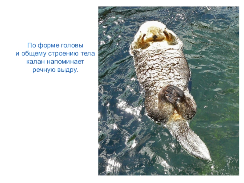 Слайд 4По форме головы и общему строению тела калан напоминает  речную выдру.