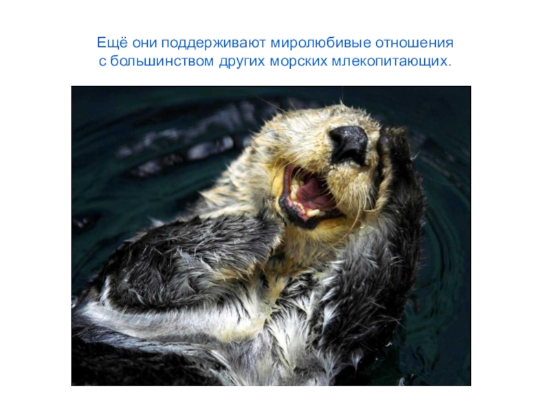 Слайд 14Ещё они поддерживают миролюбивые отношения с большинством других морских млекопитающих.