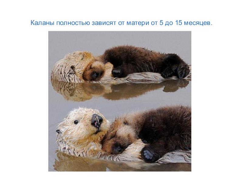Слайд 12Каланы полностью зависят от матери от 5 до 15 месяцев.
