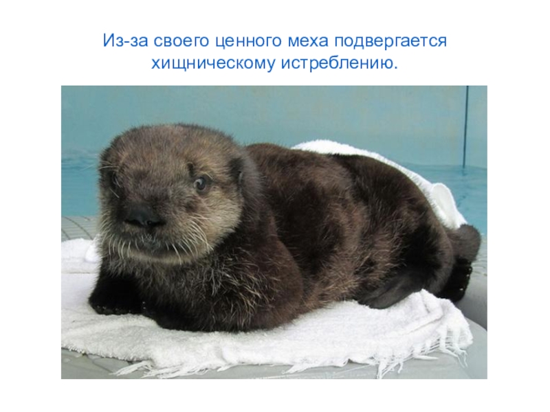 Слайд 3Из-за своего ценного меха подвергается хищническому истреблению.