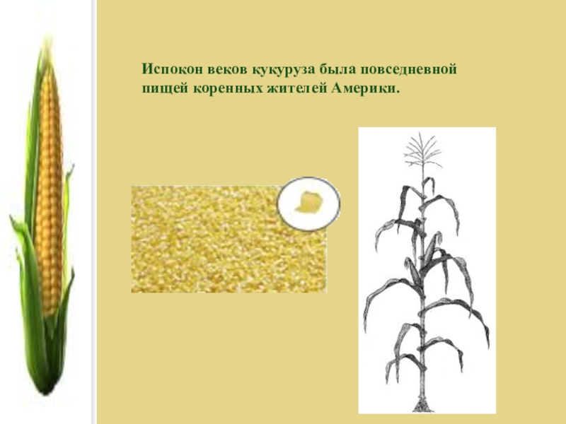 Слайд 11Испокон веков кукуруза была повседневной пищей коренных жителей Америки.