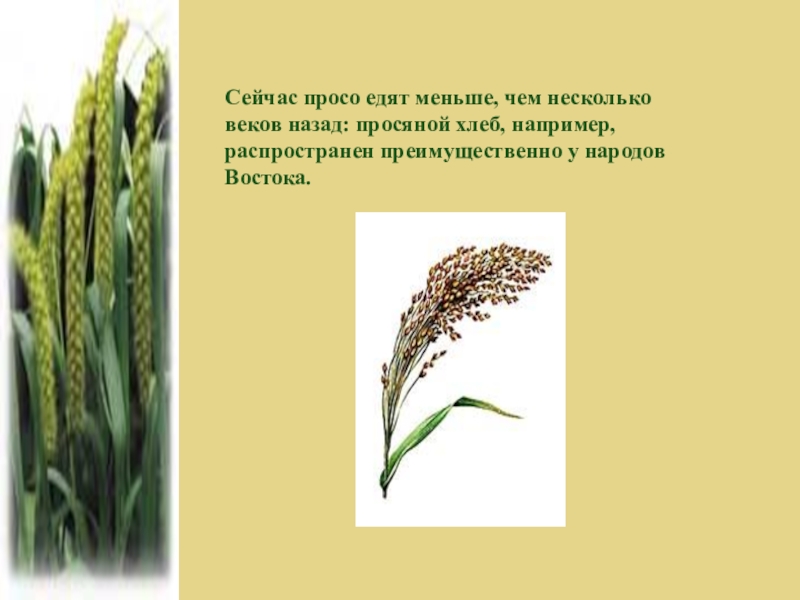 Слайд 15Сейчас просо едят меньше, чем несколько веков назад: просяной хлеб, например,