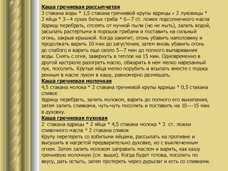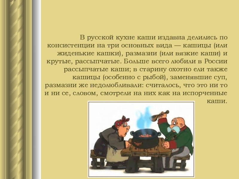 Слайд 4В русской кухне каши издавна делились по консистенции на три основных