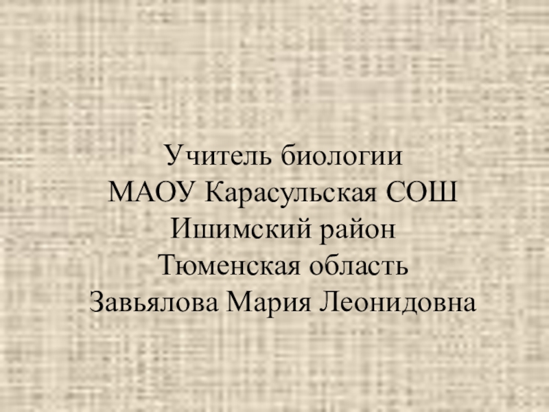 Учитель биологии МАОУ Карасульская СОШ Ишимский районТюменская областьЗавьялова Мария Леонидовна