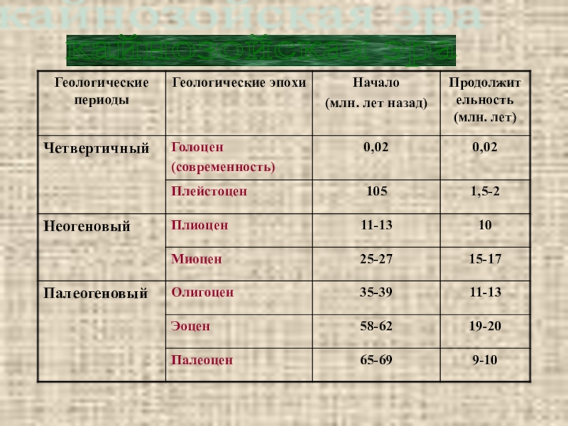 Презентация, доклад Кайнозойская эра 9-11 классы