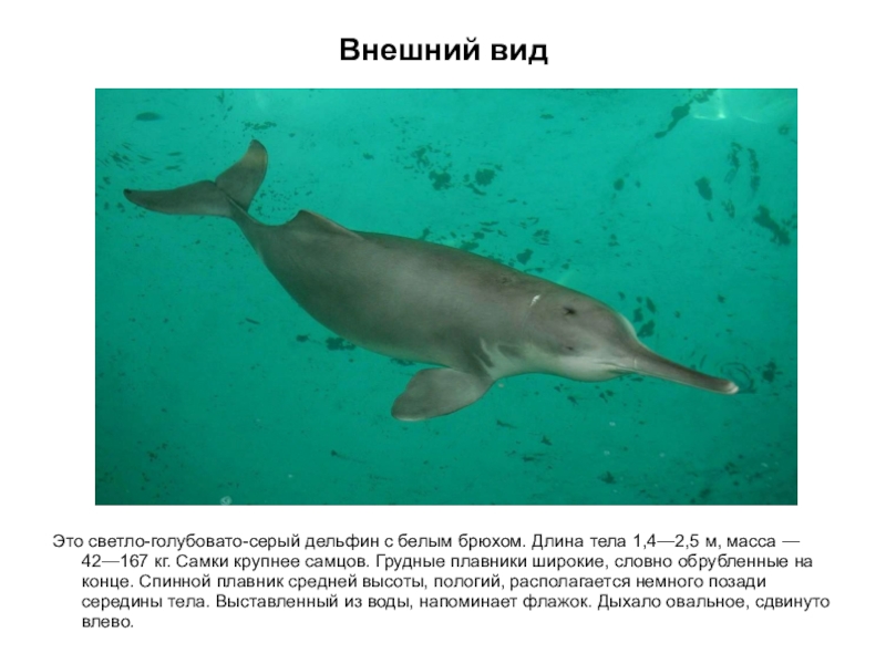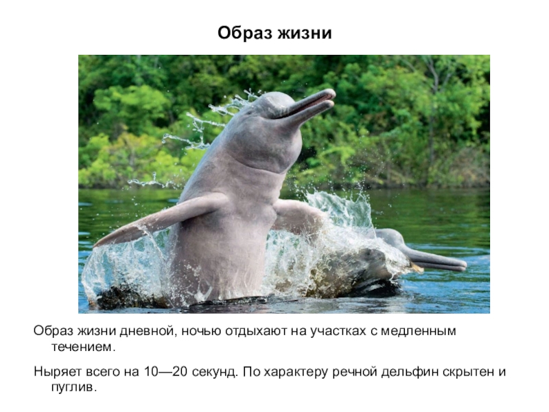 Держатся у устьев притоков, у островов и на мелководье, в мутной воде, где зрение практически бесполезно. Поэтому эти дельфины очень плохо видят и полагаются в основном на эхолокацию. В Янцзы озёрные дельфины выплывают на мелководье только для охоты за рыбой. Охотится Китайский речной дельфин в основном на моллюсков и маленькую рыбешку, угрей и сомов.