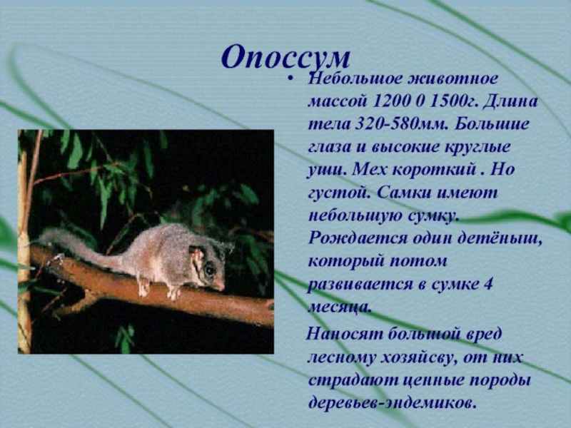 Презентация, доклад Класс млекопитающие. Отряд сумчатые, насекомоядные, рукокрылые