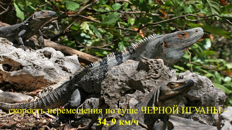 Слайд 12скорость перемещения по суше ЧЕРНОЙ ИГУАНЫ - 34, 9 км/ч