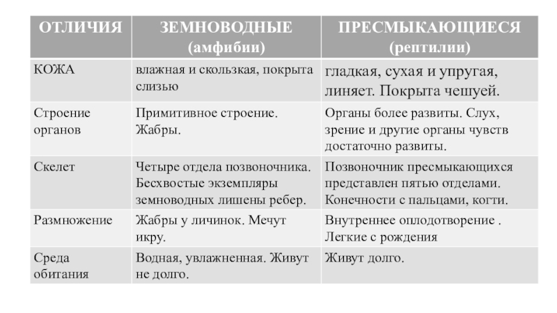 принципиальное отличие пресмыкающихся от земноводных
