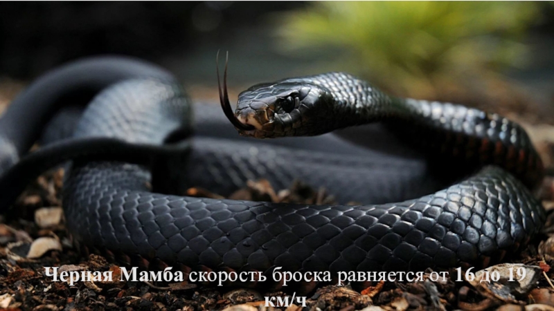 Слайд 10Черная Мамба скорость броска равняется от 16 до 19 км/ч