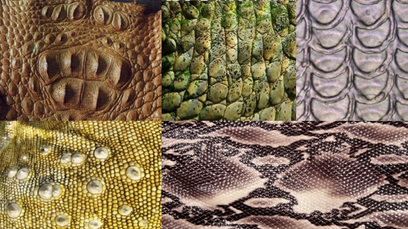 Кожа сухопутных пресмыкающихся гладкая, сухая и упругая.  Роговые покровы ящериц могут образовывать, помимо чешуй, разной формы