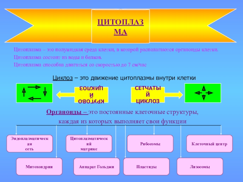 Цитоплазма – это полужидкая среда клетки, в которой располагаются органоиды клетки.   Цитоплазма