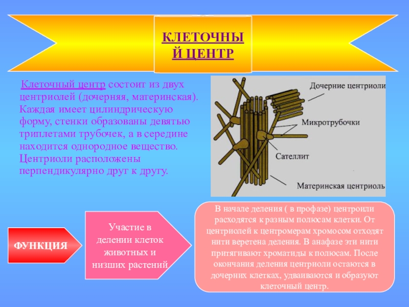 Слайд 14 Клеточный центр состоит из двух центриолей (дочерняя, материнская).