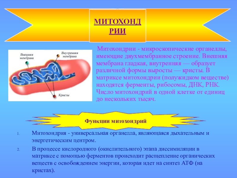 Слайд 16 Митохондрии - микроскопические органеллы, имеющие двухмембранное строение. Внешняя