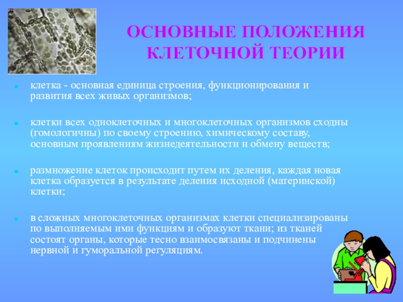Слайд 4ОСНОВНЫЕ ПОЛОЖЕНИЯ КЛЕТОЧНОЙ ТЕОРИИ